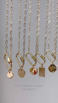 This minimalist statement carabiner necklace is perfect for dressing up or down for any occasion. The carabiner can be easily screwed open and closed, allowing you to take a trendy screw lock necklace and add a charm of your choice.