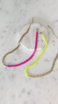 Add a pop of vibrant color to your outfit with this unique cuban chain necklace.