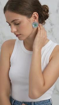 Add a touch of soft, feminine elegance to your jewelry collection with these beautiful floral stud earrings. Crafted from a slightly translucent resin in a gorgeous dusty pink, aqua blue, light brown hue each earring features delicately sculpted petals that beautifully mimic a blooming flower. Perfect for spring and summer styling or adding a romantic touch to your everyday look, these lightweight studs are an effortless way to elevate any outfit.